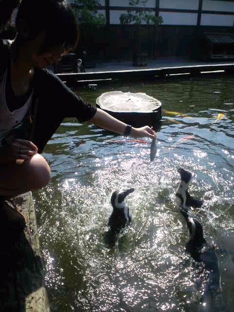 ペンギンにご飯をあげたり
