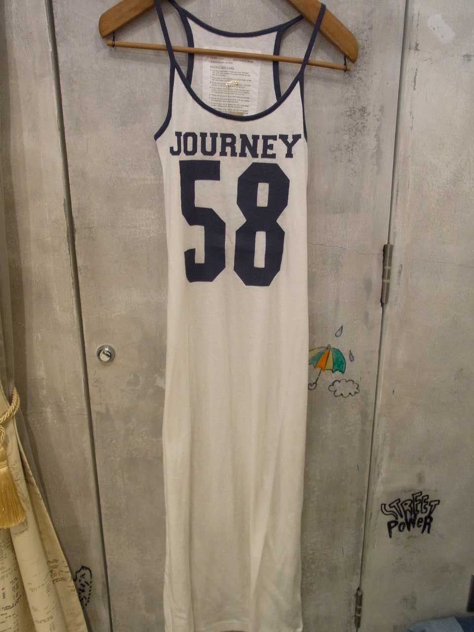 COM:英字のひび割れプリントがさりげないこちらはそのままでも、ワンピのインナーにもお勧め